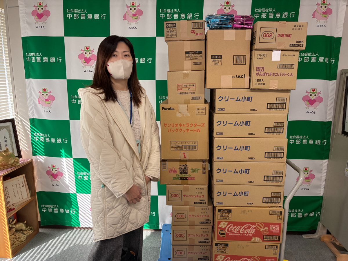 11月10日(月)から始まった「年末たすけあいチャリティー募金(物品寄附)」に、食品(菓子・パンなど)・飲料・文具・日用品など物品が続々と届きました。いただいた物品は、随時社会福祉施設の皆様にお渡ししております。12/3(水)は母子生活支援施設名古屋市にじが丘荘さんへ贈呈いたしました。この活動は12/26(木)まで行っております。皆様の善意のご寄附をお待ちしております。